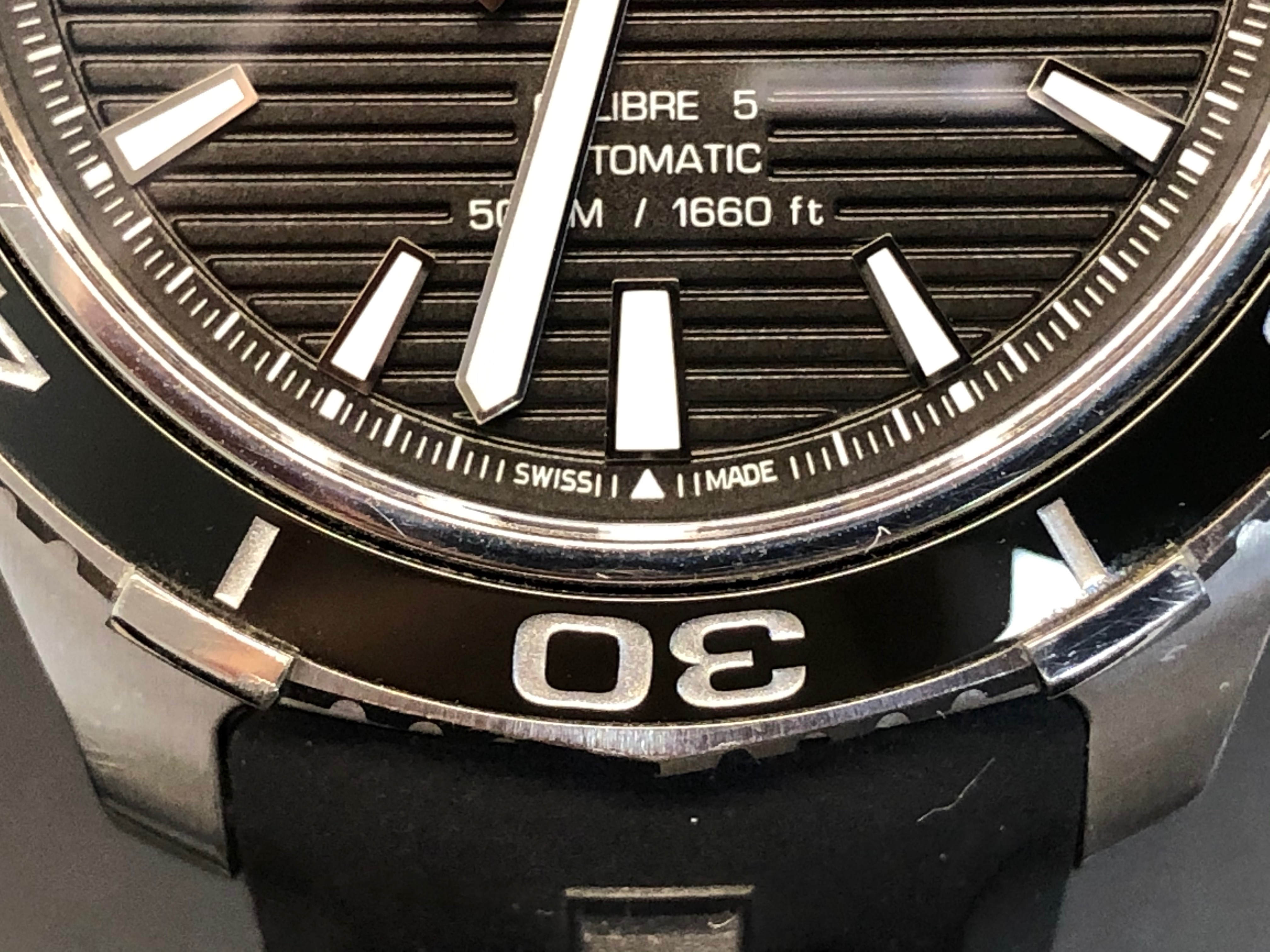 또한 잠수시에는 심도 500m(50 bar, 1650ft)까지 방수가 되는데요, 이는 바다 500m에서 수압에 견딘다는 것이지 수돗물을 틀고 시계를 갖다 대거나 수영장에 차고 들어갔을 때 이상이 없다는 것이 아닙니다. 이점 분명히 참고하셔야 합니다. (제조사에서는 분명 1650ft까지 라는데 시계에는 1660ft으로 쓰여있습니다. 면세점에서 구입한 건데 가품은 아니겠죠?)