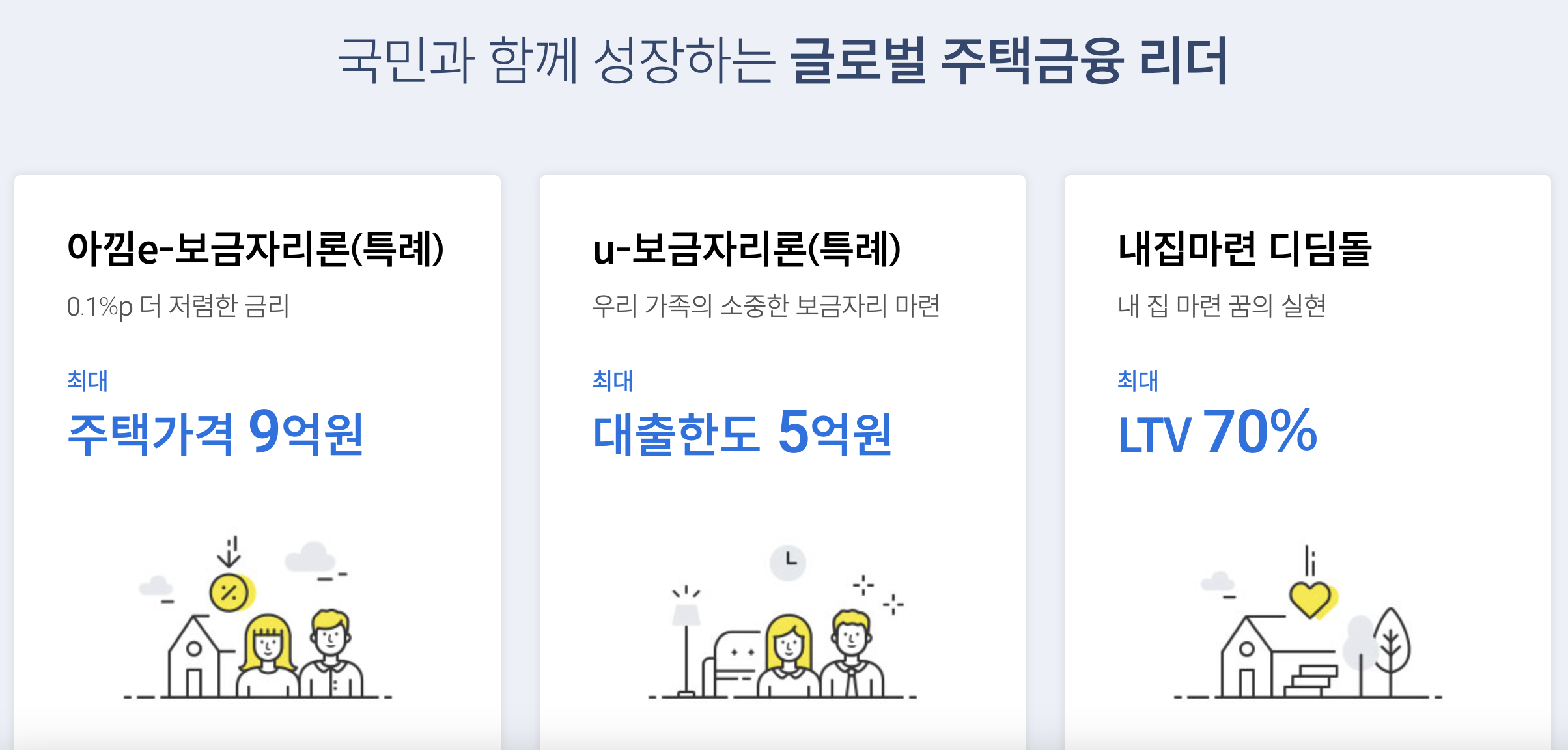 - 구입용도, 보전용도, 상환용도로 주택에 관해 3가지 용도로 모두 대출이 가능