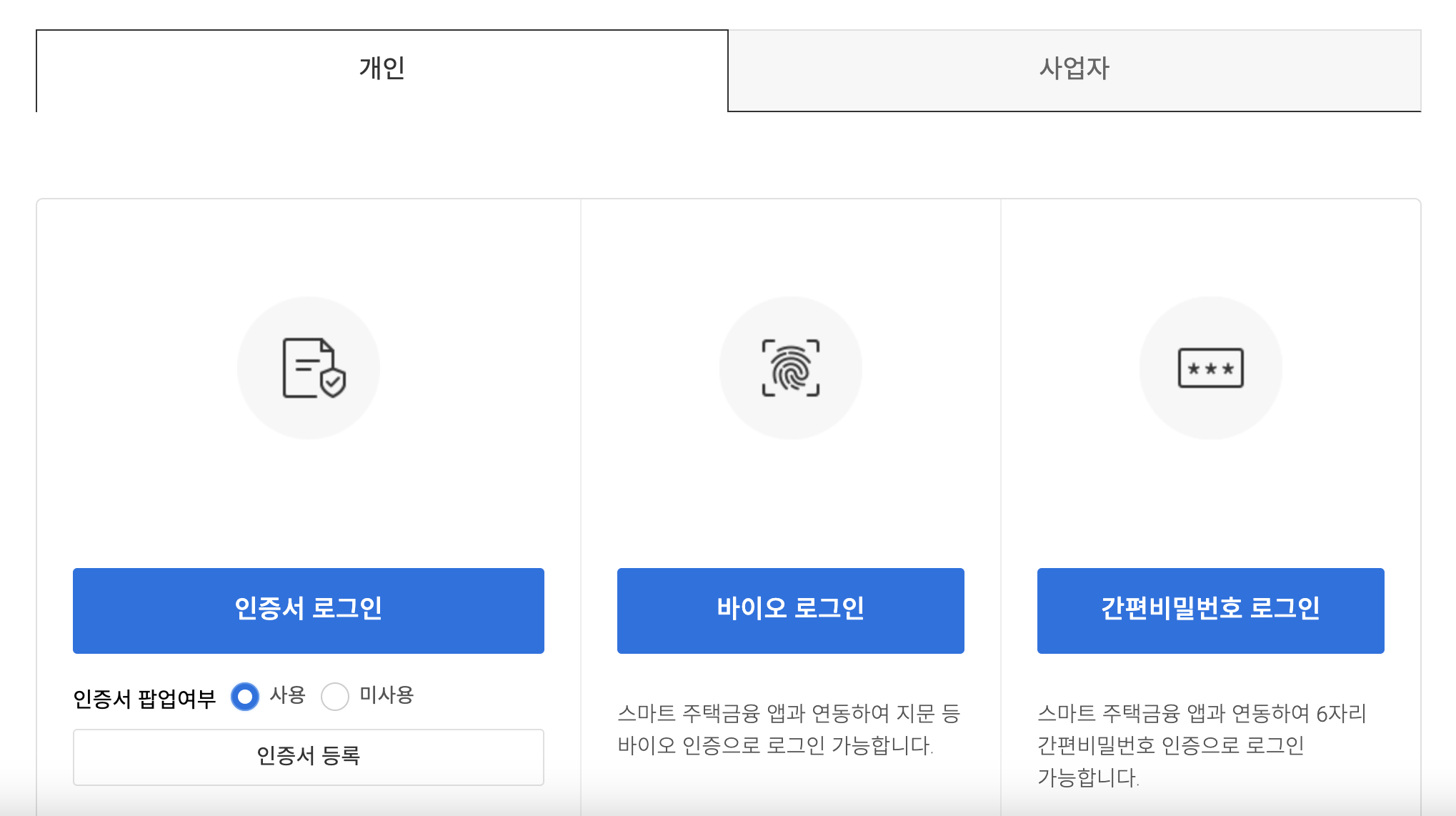 다음은 로그인 입니다. 인증서가 있으신 분들께서는 인증서를 사용해 로그인하셔서 진행하시면 됩니다. 단 인증서 등록이 안되신 분들을 등록 먼저 하신 후 로그인 하셔야 합니다.