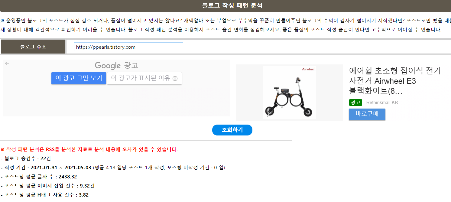 블로그 작성 패턴 분석은 아래 "블로그 유틸 24"의 도움을 받았다.