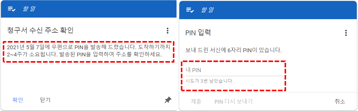 PIN번호가 오면 아래 화면에 정확히 입력 후 제출을 하시면 됩니다.