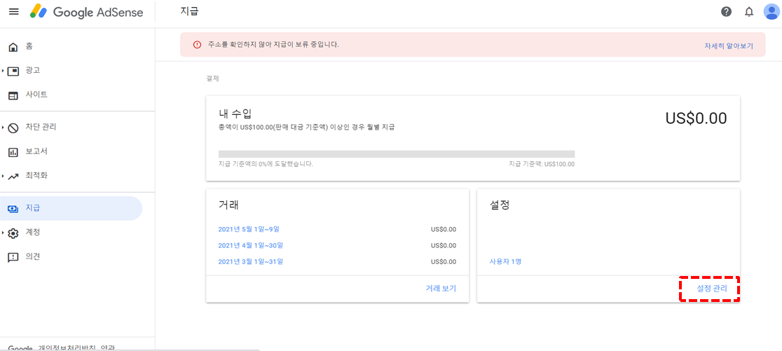 애드센스 홈페이지에서 주소를 확인하고 변경하는 법을 알려드리겠습니다.