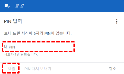 PIN번호는 3번 이상 잘못 제출할 경우 불이익이 있을 수 있으니 한 번에 정확히 입력하시기 바랍니다.