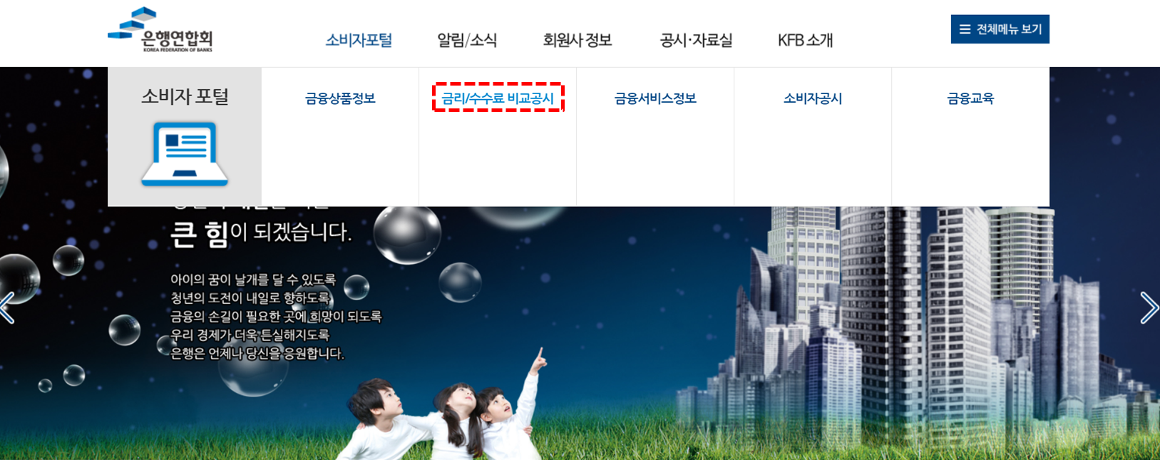 대출금리에 대한 이해 > 은행 수수료 비교를 클릭합니다.