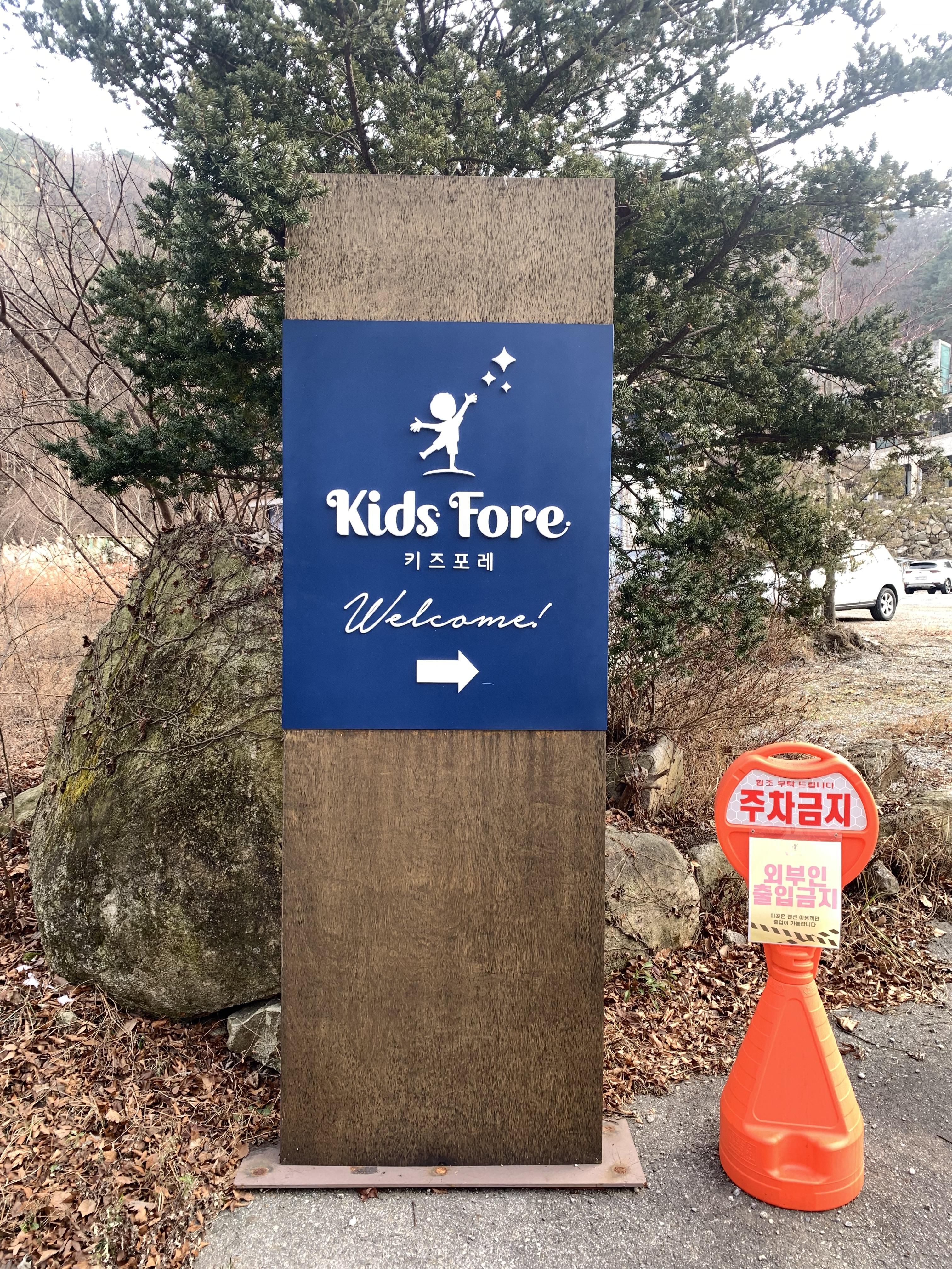 키즈포레 도착을 알리는 이정표 및 간판