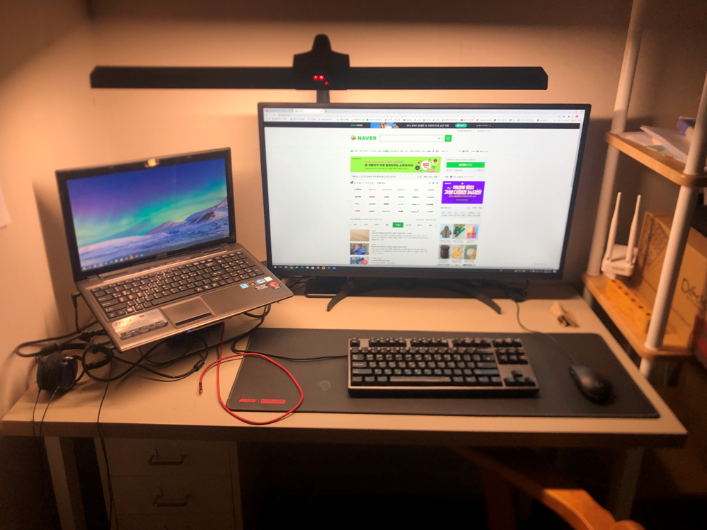 저희 집 설치 사진입니다. 원래 왼쪽의 모니터만 가지고 블로그를 작성했는데 이렇게 모니터가 생기니 얼마나 편한지 말할 수 없을 만큼 좋네요.