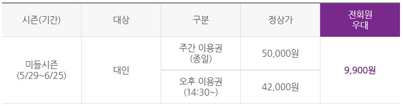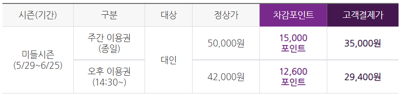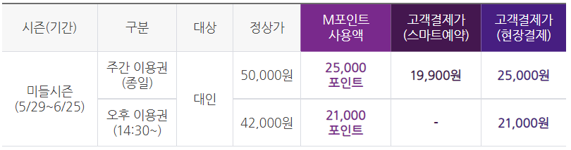참고로 현재 미들 시즌으로 방문일 기준 5.29. ~ 6.25. 까지 적용됩니다.