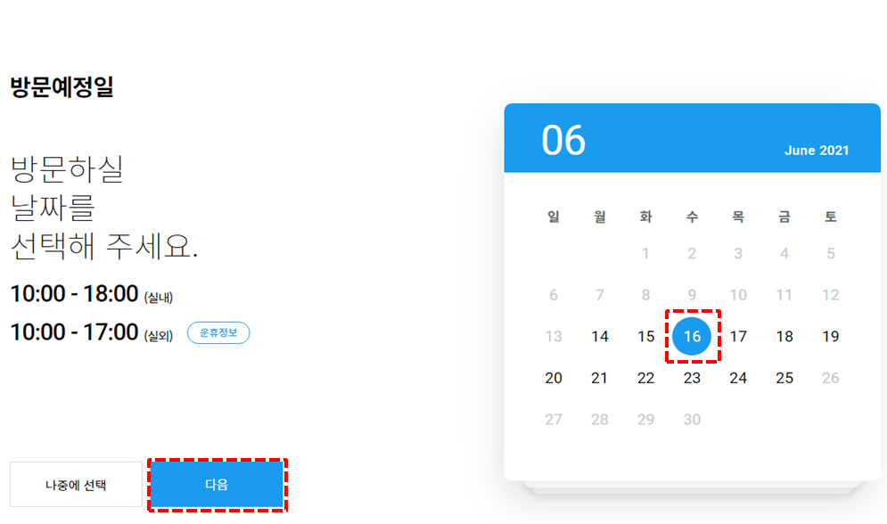 방문일은 선택하고 다음을 누릅니다.
