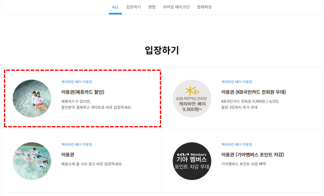 캐리비안 베이 홈페이지에 들어가면 이달의 할인 등 각종 정보가 있습니다. 하지만 가장 많이 이용하시는 카드 할인 정보에 대해 집중적으로 알아보도록 하겠습니다. 아래 리스트를 한 번에 확인하시고 예약하시면 이것저것 찾아보는 시간을 단축하실 수 있을 것 같습니다. 아무쪼록 방문 예정이신 분들에게 도움이 됐으면 좋겠습니다.
