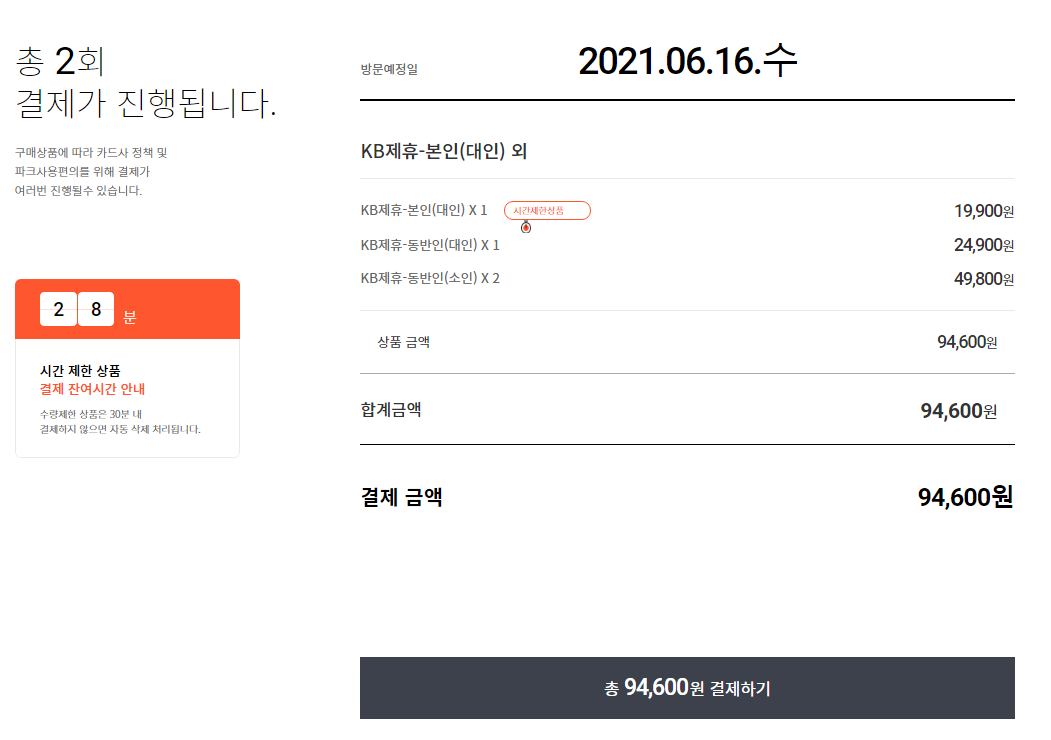 2위. 제휴카드 스마트 예약 - 94,600원