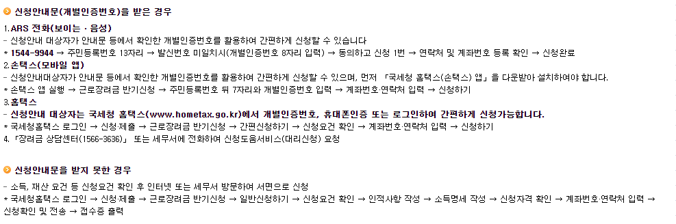 신청 방법 (ARS, 손택스, 홈택스, 장려금 상담센터 - 총 4가지)