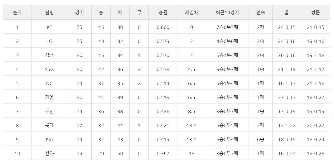 그리고 가장 중요한 포인트는 기아와 한화가 리스 9위와 10위입니다. 선두 싸움보다 치열한 게 꼴찌 싸움입니다.