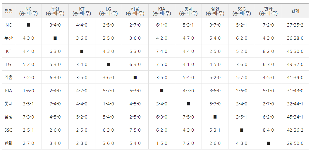요약해 보자면 NC and KIA --> 한화 이렇게 천적 관계가 형성됩니다.