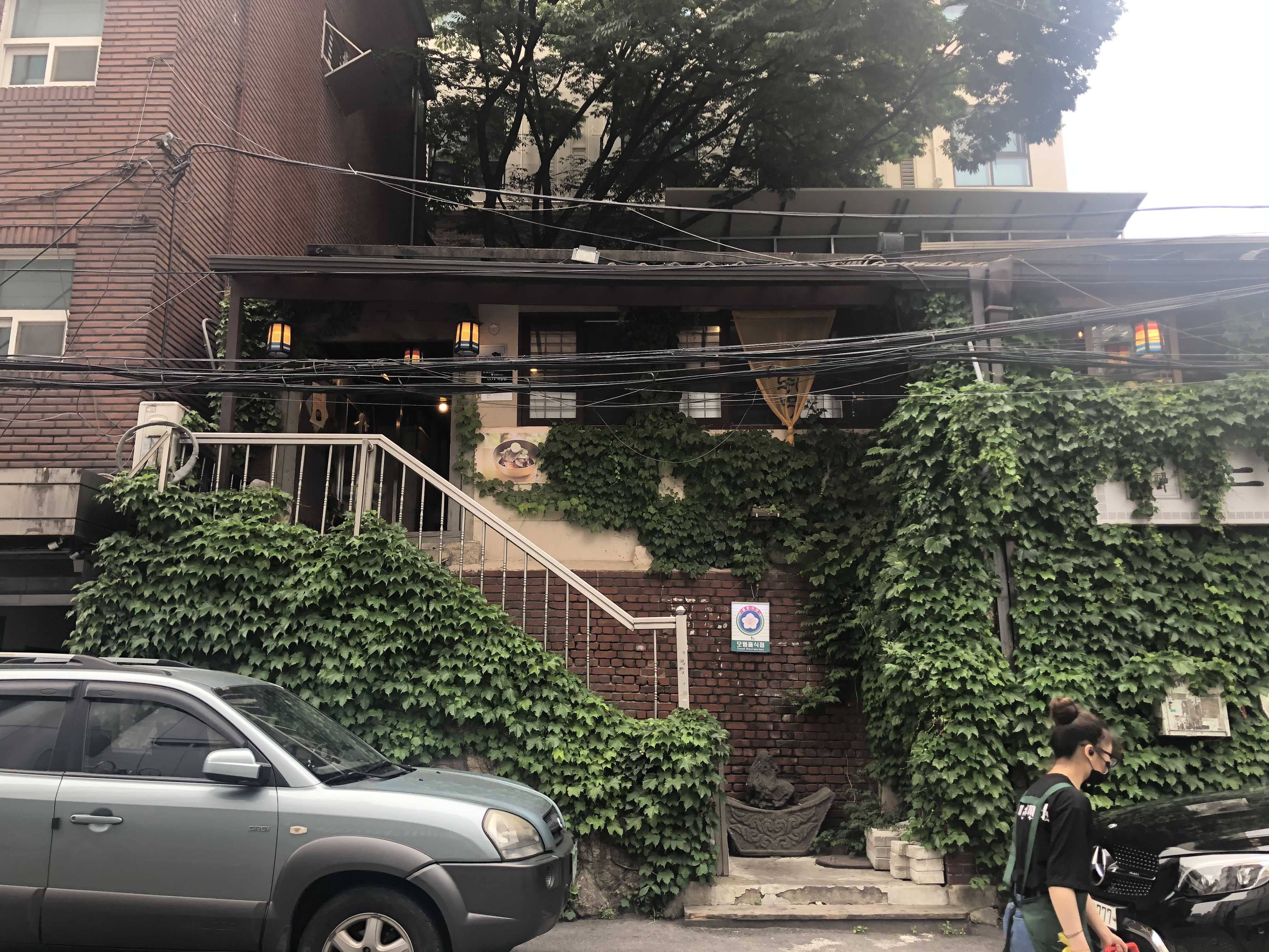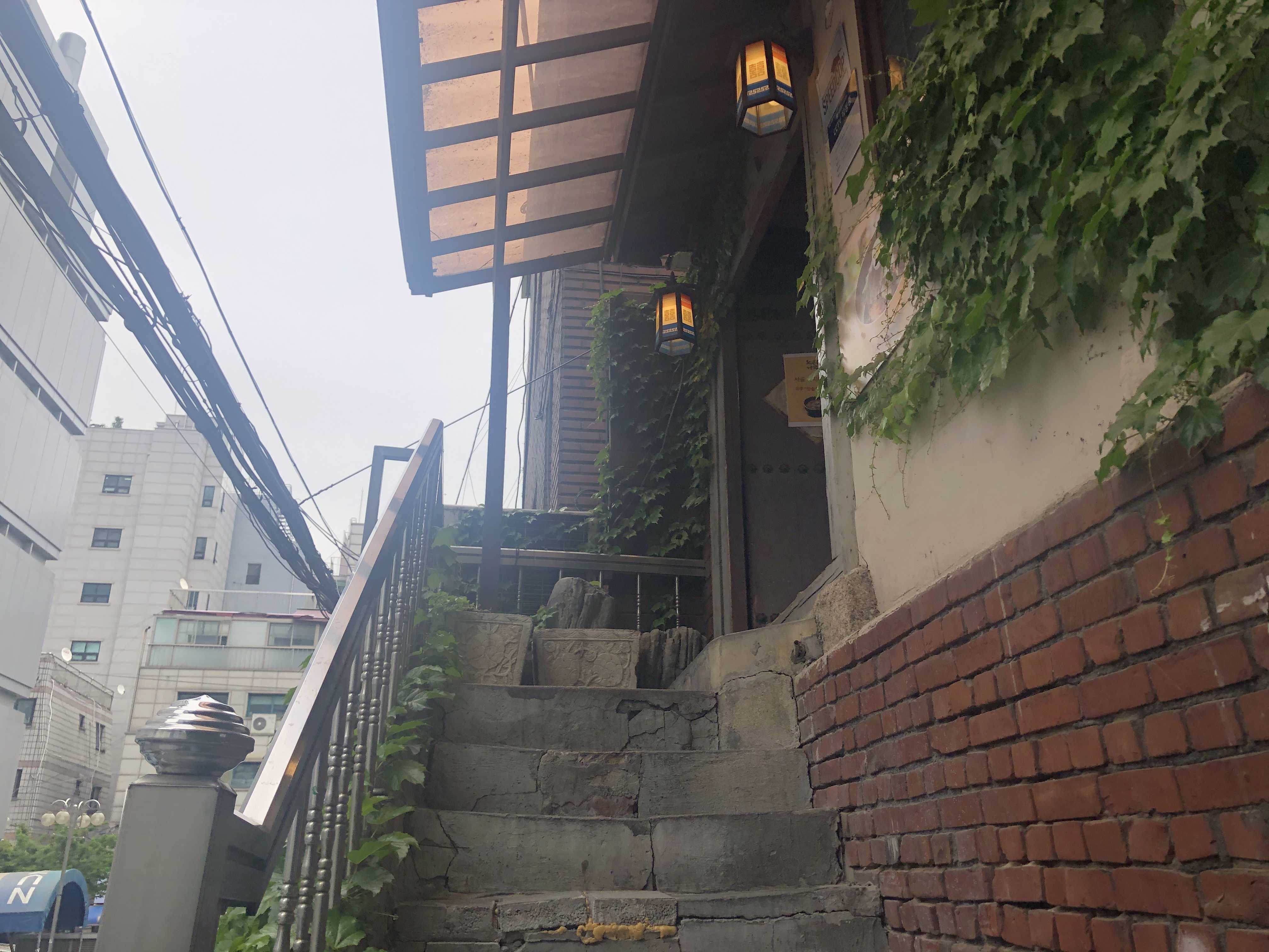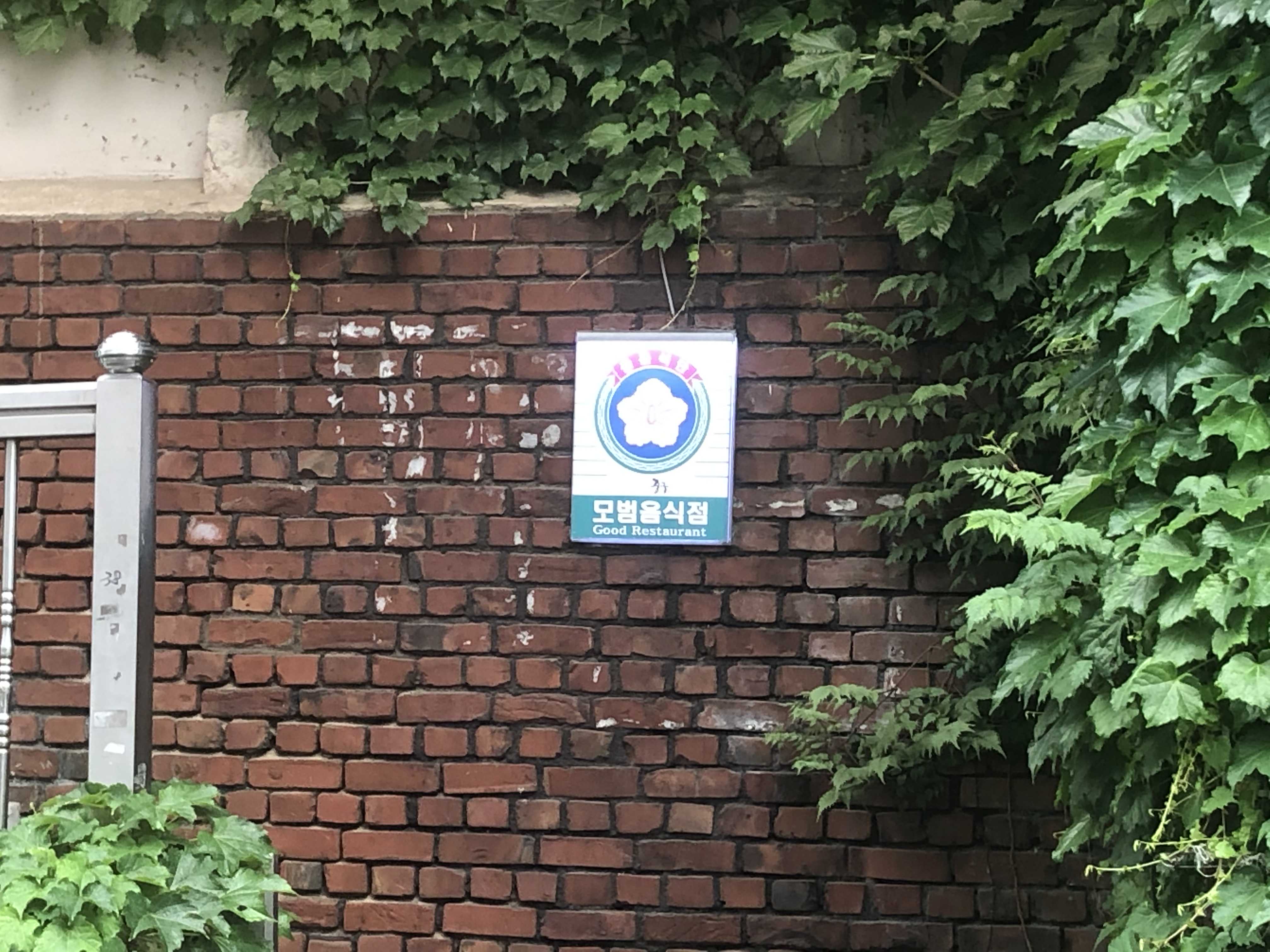 근처에 도착하면 담쟁이덩굴이 보이는데요 누가 봐도 딱 그 집입니다. 입구는 1층으로 바로 들어올 수 없고 올라가는 작은 계단이 있습니다. 모범음식점 무궁화 간판도 보이네요.