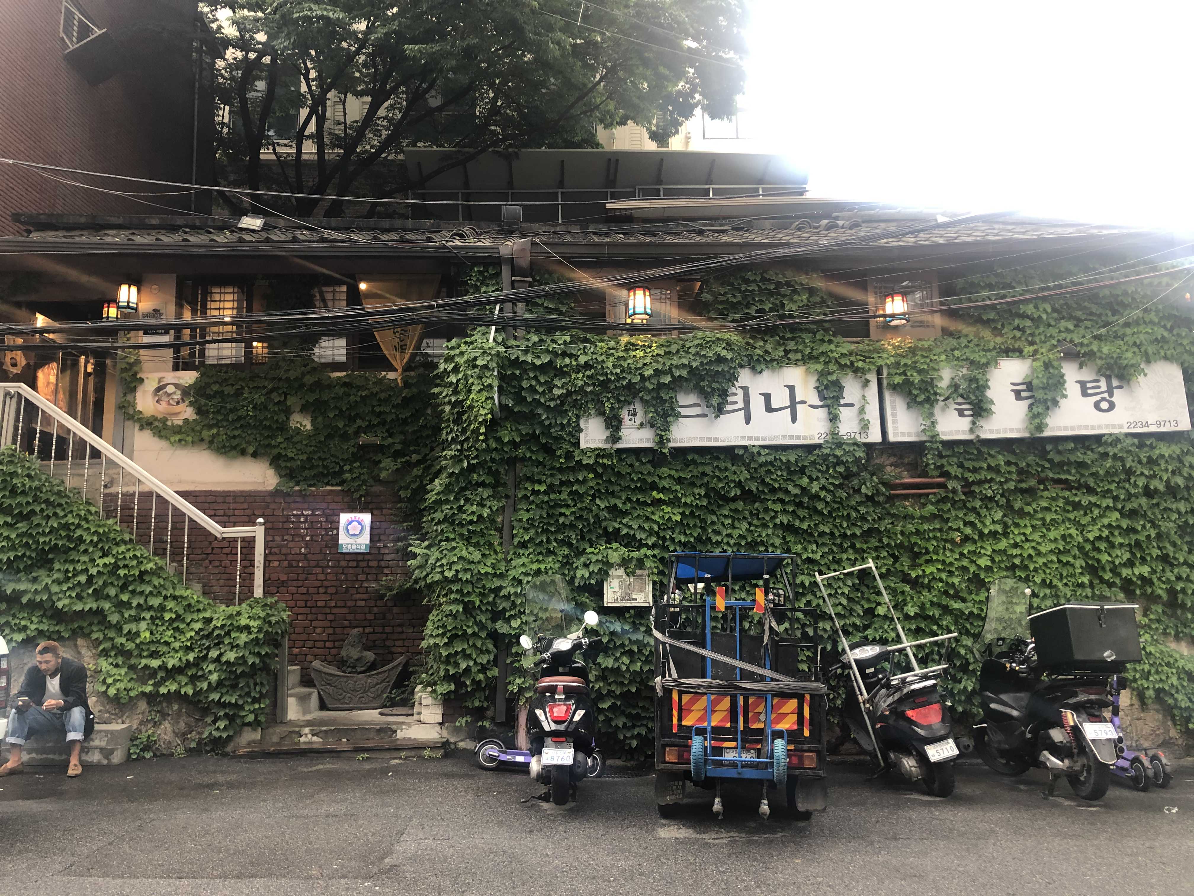 젊은 사람이 붐비는 음식점을 원한다면 두타나 밀리오레 또는 현대 시티 아웃렛 근처 음식점을 가는 것을 추천합니다만 옛 정취를 느끼며 흔히 볼 수 없는 큰 가마솥에서 끓인 따끈한 설렁탕 한 그릇이 생각난다면 두타에서 걸어서 5분 거리에 있는 "느티나무 설렁탕"에 방문해도 좋겠습니다. 필자는 이곳 근처에 직장이 있기도 해서 가끔 오는 집인데요. 이곳도 모두 야간 쇼핑몰이 들어온 지 오래됐지만 이 집만큼은 예전 그대로 한옥집을 고수하고 있어 담쟁이덩굴이 자란 빨란 벽돌과 까맣지만 색이 바랜 기와를 보고 있으면 어렸을 적 생각이 납니다. 그래서 가끔 비가 올 때나 기분이 헛헛? 할 때 찾는 집입니다.