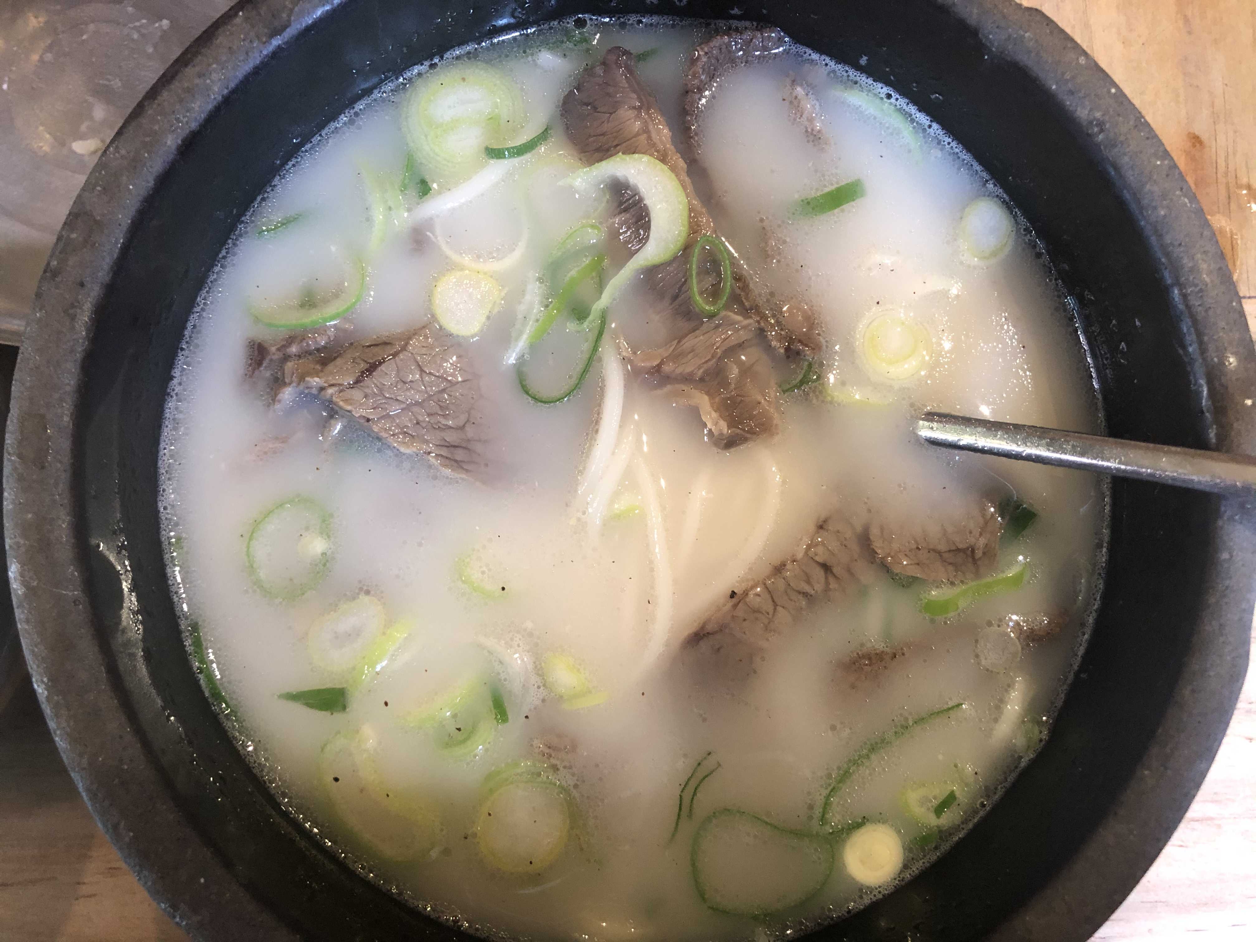 요즘 프랜차이즈 설렁탕 집에 가면 기본적으로 소금간이 짭짤하게 되어 나오는 경우가 많습니다. 하지만 이곳은 나오자마자 국물을 먹었을 때 심심합니다. 웬만하면 그냥 먹기는 심심한 감이 있고 소금과 후추를 조금 둘러줘야 먹을만합니다. 건강에 안 좋다고 소금 적게 넣어 먹으라는 부모님이 생각나네요. 여기서 먹으면 뒷만이 개운한 게 확실히 건강하게 설렁탕을 먹은 느낌이 좋습니다.