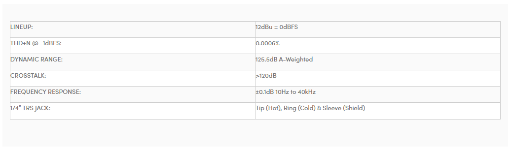 Heaphone Outputs : 다이나믹 레인지 "125.5dB"