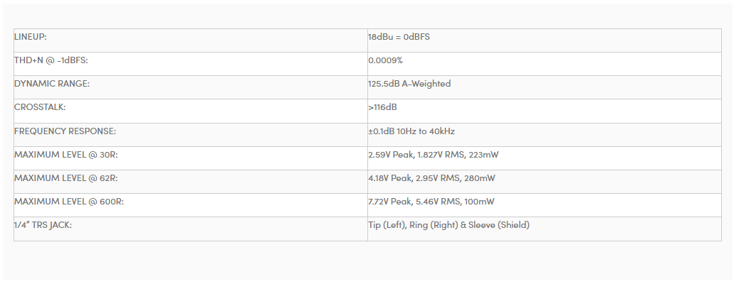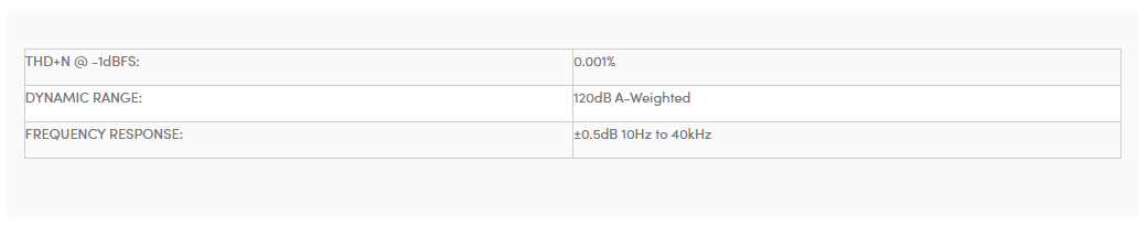 Heaphone Outputs : 다이나믹 레인지 "125.5dB"