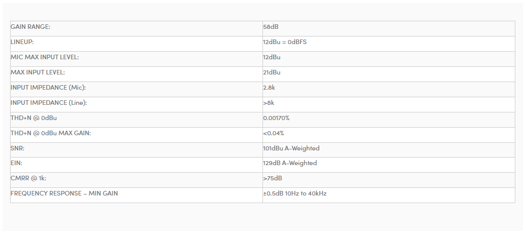 모든 제품에 Audient의 ASP8024-HE 콘솔의 프리앰프와 동일한 Mic Preamp가 탑재